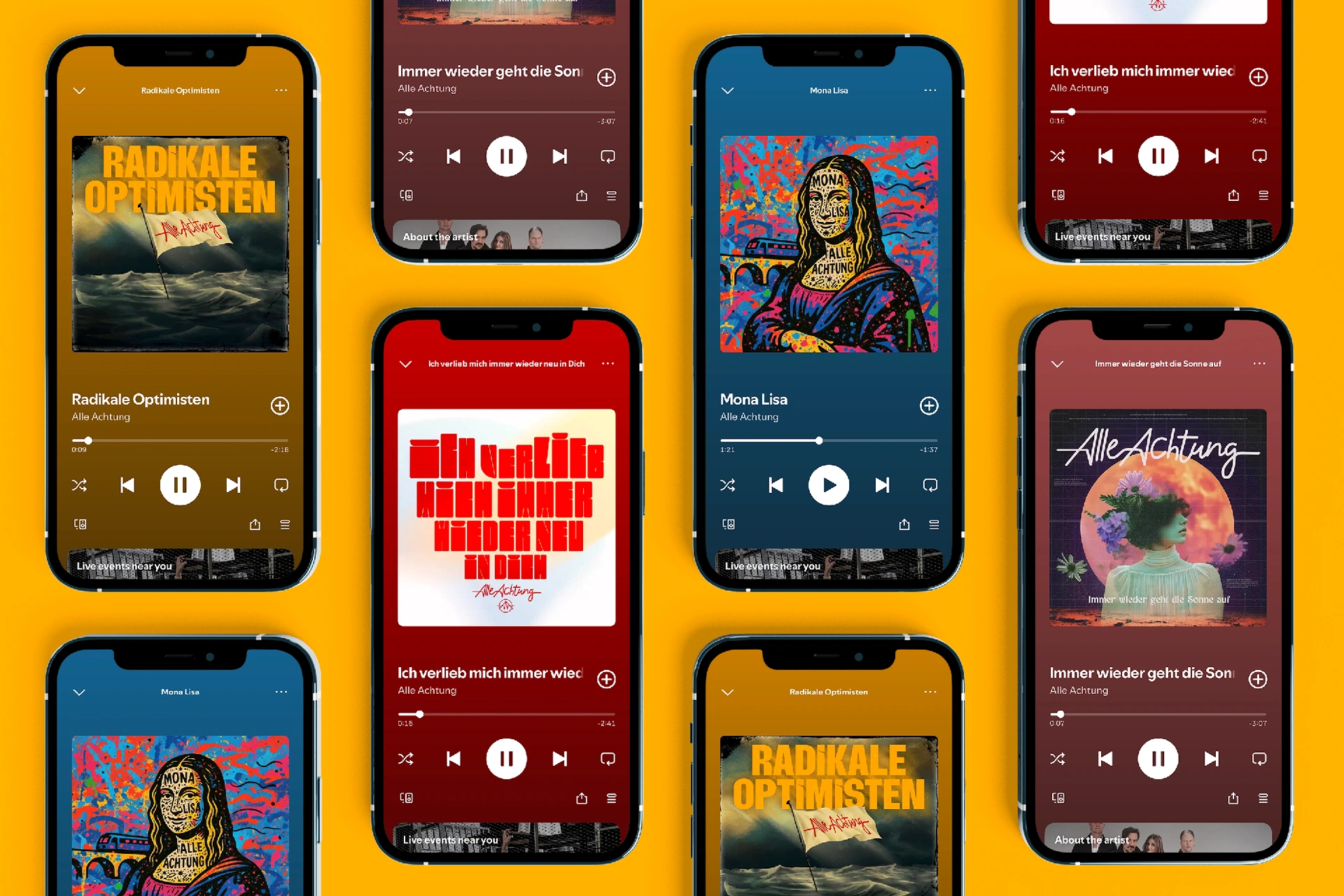 Für die steirische Band Alle Achtung! haben wir das Cover für ihr neues Album „Radikale Optimisten“ illustriert – ein visuelles Statement für Zuversicht mit Haltung. Kraftvoll. Laut. Und inspiriert von den ganz Großen.